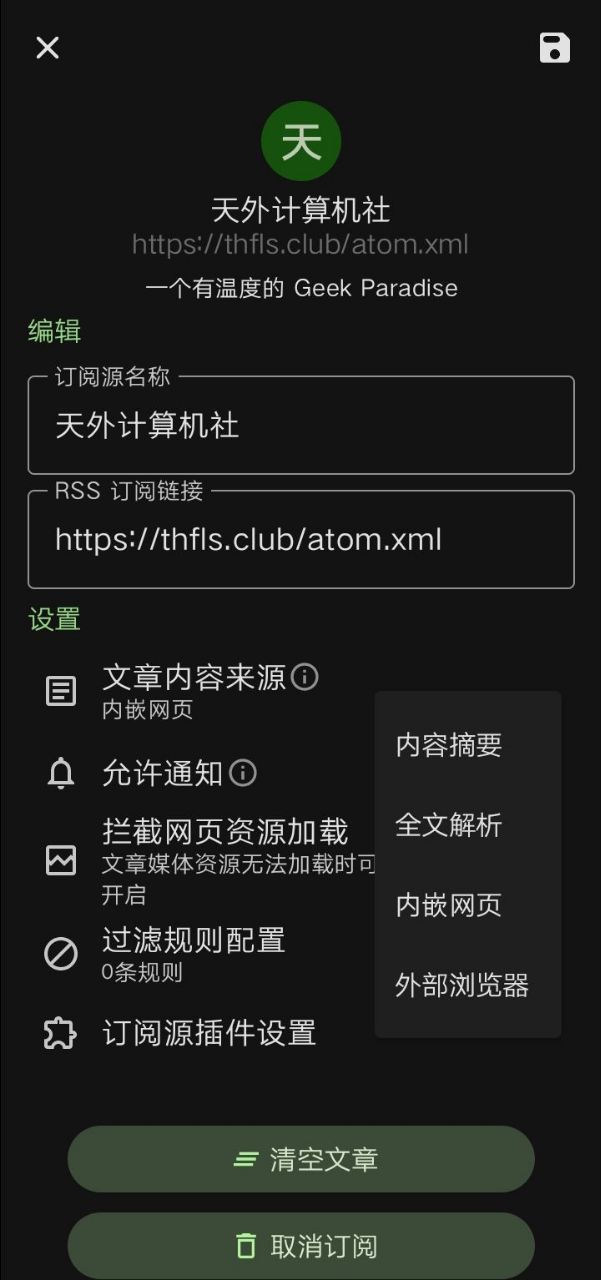 - 高效学习:订阅学科知识、英语学习或竞赛资讯的RSS源,打造专属“学习资料库”。
